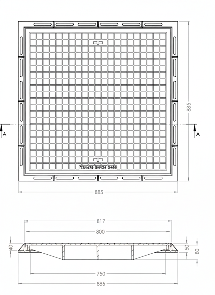 Kod: MGDB-118 Yük sınıfı: C250 Ağırlık: 57+3 Ölçü:600x800x60
