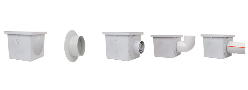 Suyun doğal akışını sağlamak için kutuya eğimli boru takılabilir.